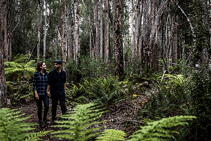 This great 45-minute walk takes you around the lake, through the cow paddock into a beautiful tree-fern forest. You will meander through thick tree ferns and open glades and past huge trees. The forest abounds with wildlife and an evening walk will assure you plenty wildlife viewing, maybe even a site of the elusive quoll.